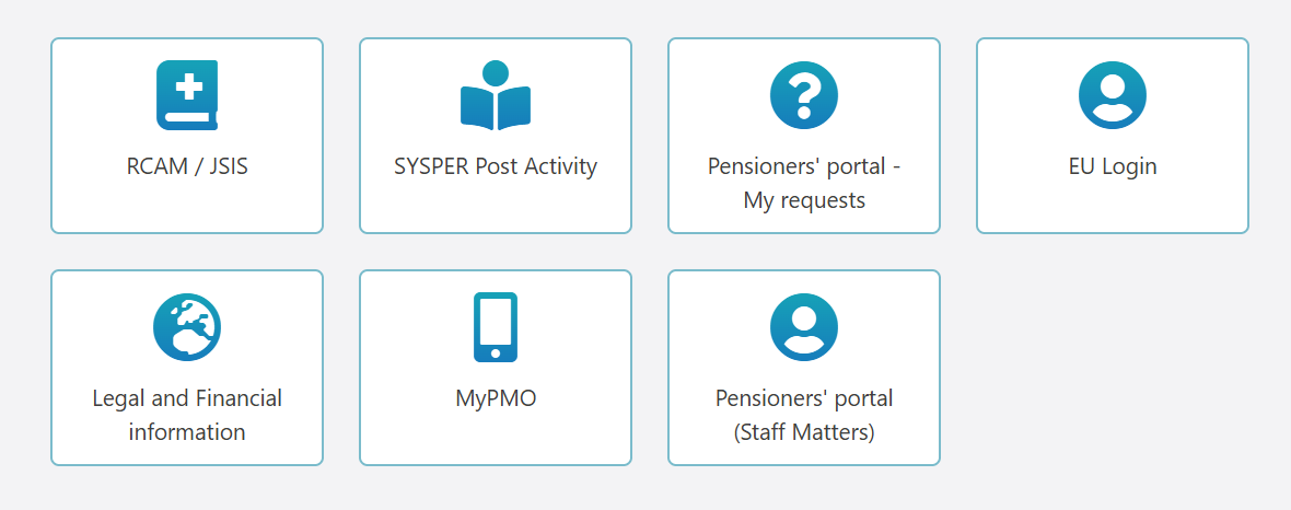 SYSPER Post Activity: ermöglicht es Ihnen, Ihre Rentenbescheinigungen einzusehen oder auszudrucken, Steuerbescheinigungen zu erstellen, persönliche Daten hinzuzufügen/zu ändern/zu ergänzen, eine Lebenserklärung zu versenden usw. Bitte beachten Sie, dass all diese Maßnahmen für Pensionäre des Europäischen Parlaments, des Gerichtshofs und des Europäischen Wirtschafts- und Sozialausschusses nicht verfügbar sind!